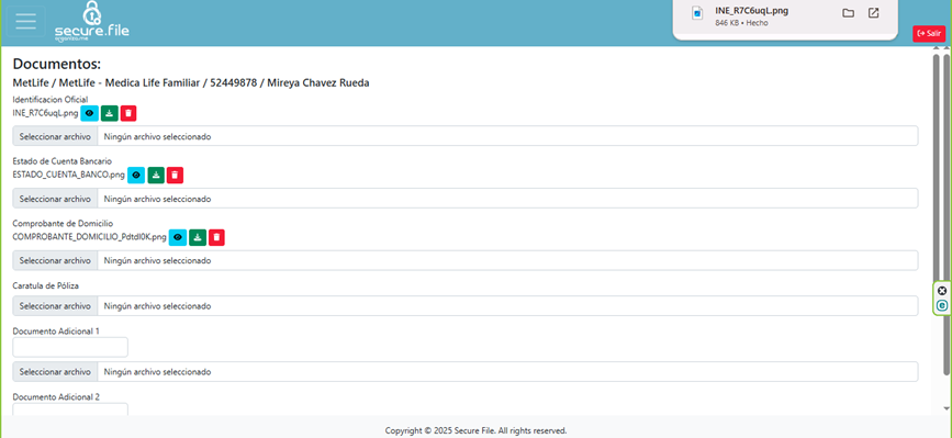 Existe la sesión documental en la cual puedes agregar documentación digital relacionada con el cliente y para sustento de la apertura de la póliza.