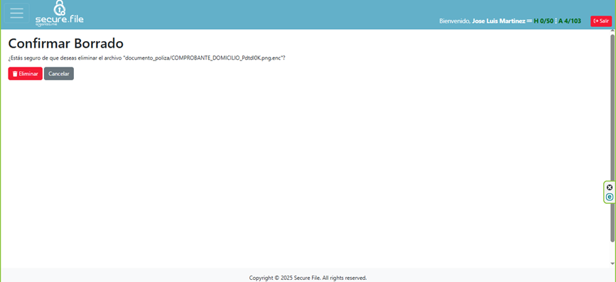 Borrar: Borrar de su almacenamiento los documentos adjuntados |